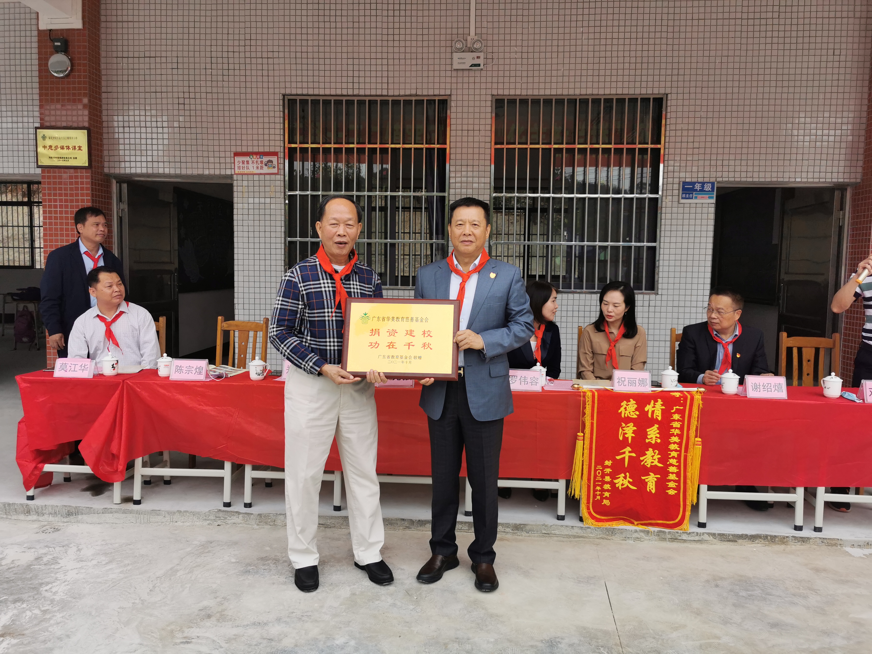 - 2021年10月29日上午,肇庆市封开县寨河学校“华美教学楼”落成启用仪式隆重举行。华美国...